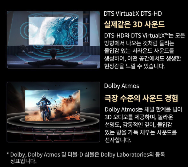 - 사운드는 기본 2.1채널에 돌비 애트모스까지 지원되며,