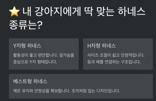지금 우리 강아지에게 딱 맞는 하네스를 찾아보세요!
