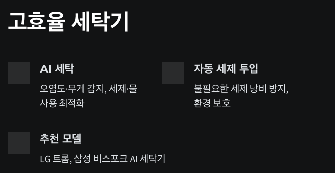 - 추천 모델: LG 트롬 세탁기, 삼성 비스포크 AI 세탁기