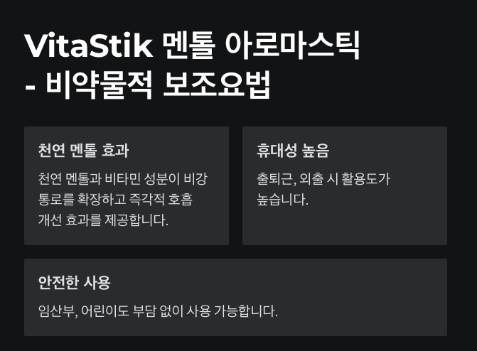 3. 🌿 VitaStik 멘톨 아로마스틱 – 비약물적 보조요법