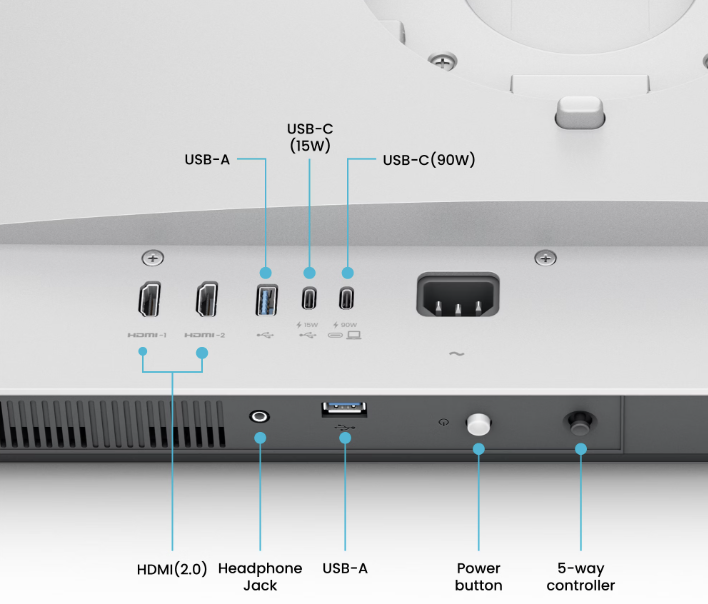 - 입력: USB-C(90W), HDMI x2, USB-A x2, Audio out